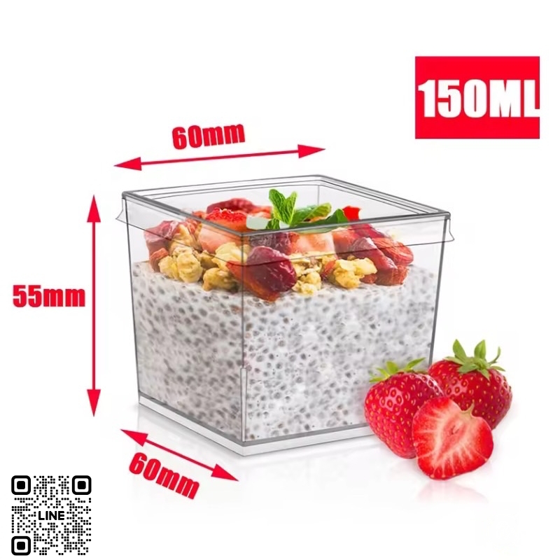 3. ถ้วย 150ml +ฝา ขนาด: 6x6x5.5 cm ความจุ 150 ml