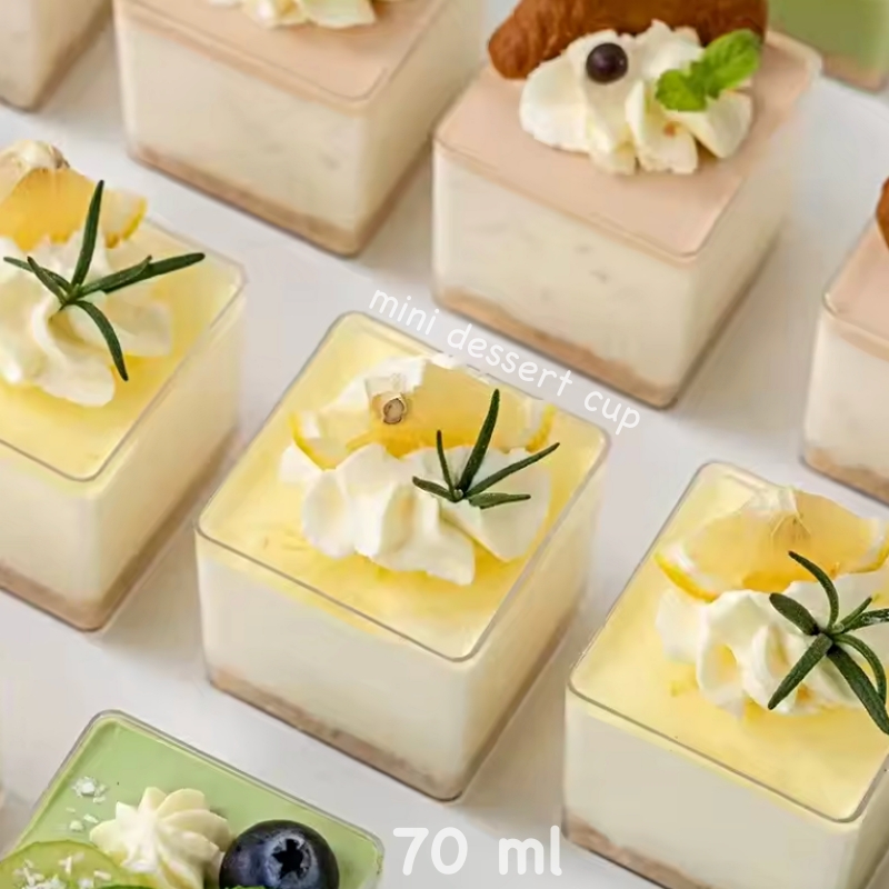 ถ้วยมูส มินิ ถ้วยพลาติกใสเนื้อแข็งแบบหนา ฝาปิดแบบนิ่ม