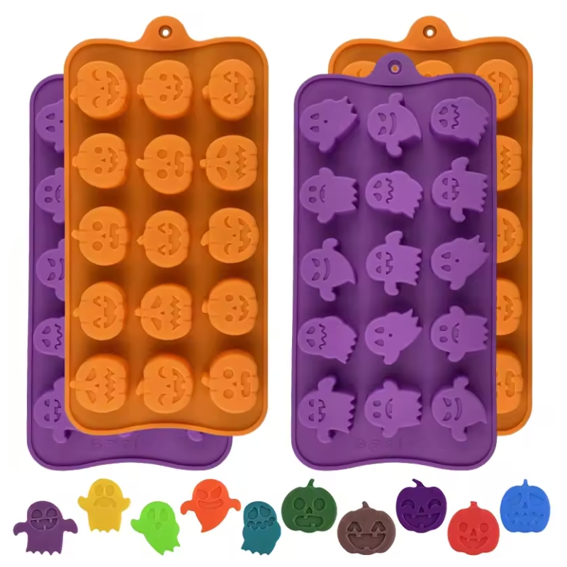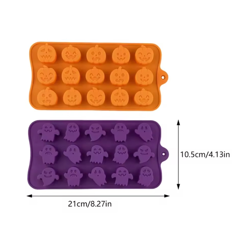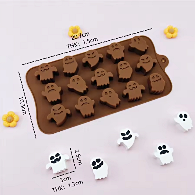 - พิมพ์ซิลิโคน มินิชอคโกแลตฟักทอง ผีน้อยน่ารัก หลากหลายแบบในแผ่นเดียว