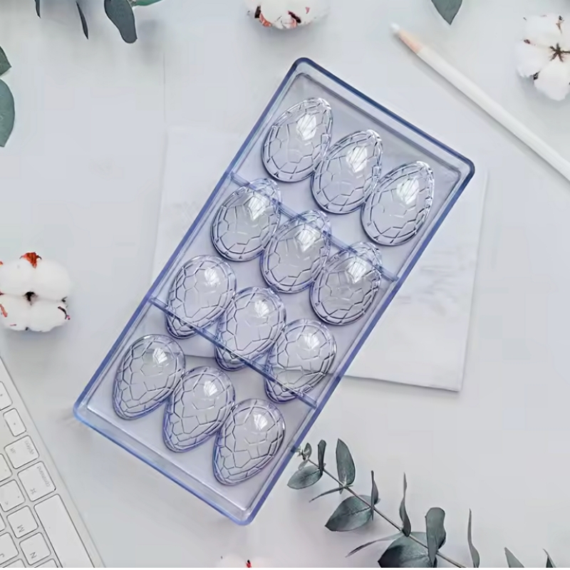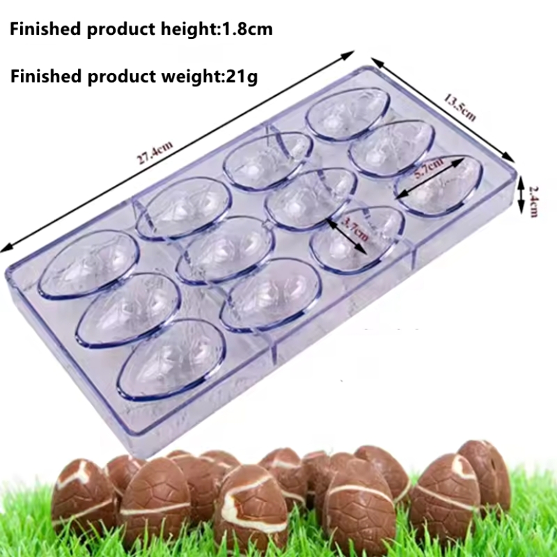พิมพ์รูปไข่ eater มีลาย ขนาดแต่ละช่อง 3.7x5.7 cm สูง 1.8 cm ขนาด นน/ชิ้น = 21g รวม 12 ช่อง